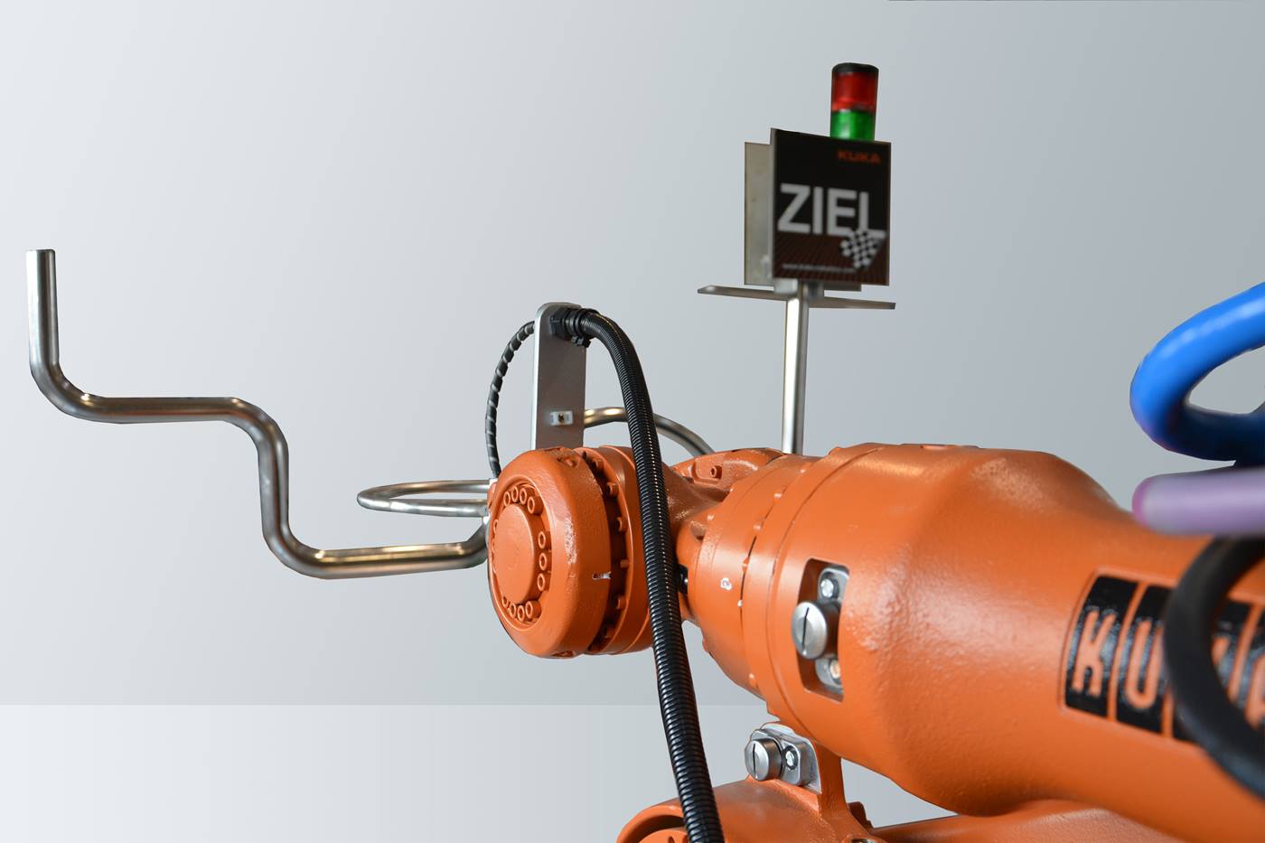 Fun and excitement – while also learning about robots – that is the KUKA Hot Wire. In this game of dexterity, the challenge is to guide a ring along a thin, bent metal tube from start to finish, without the ring touching the tube.