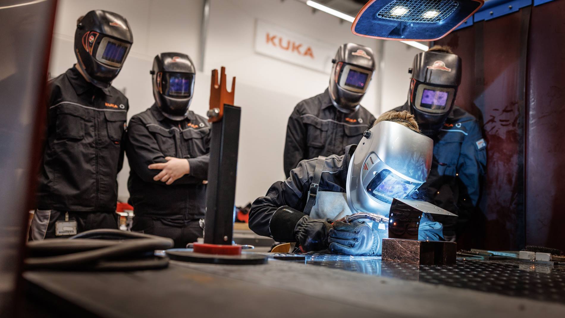At the KUKA training center, trainees learn on new machines with state-of-the-art technology.